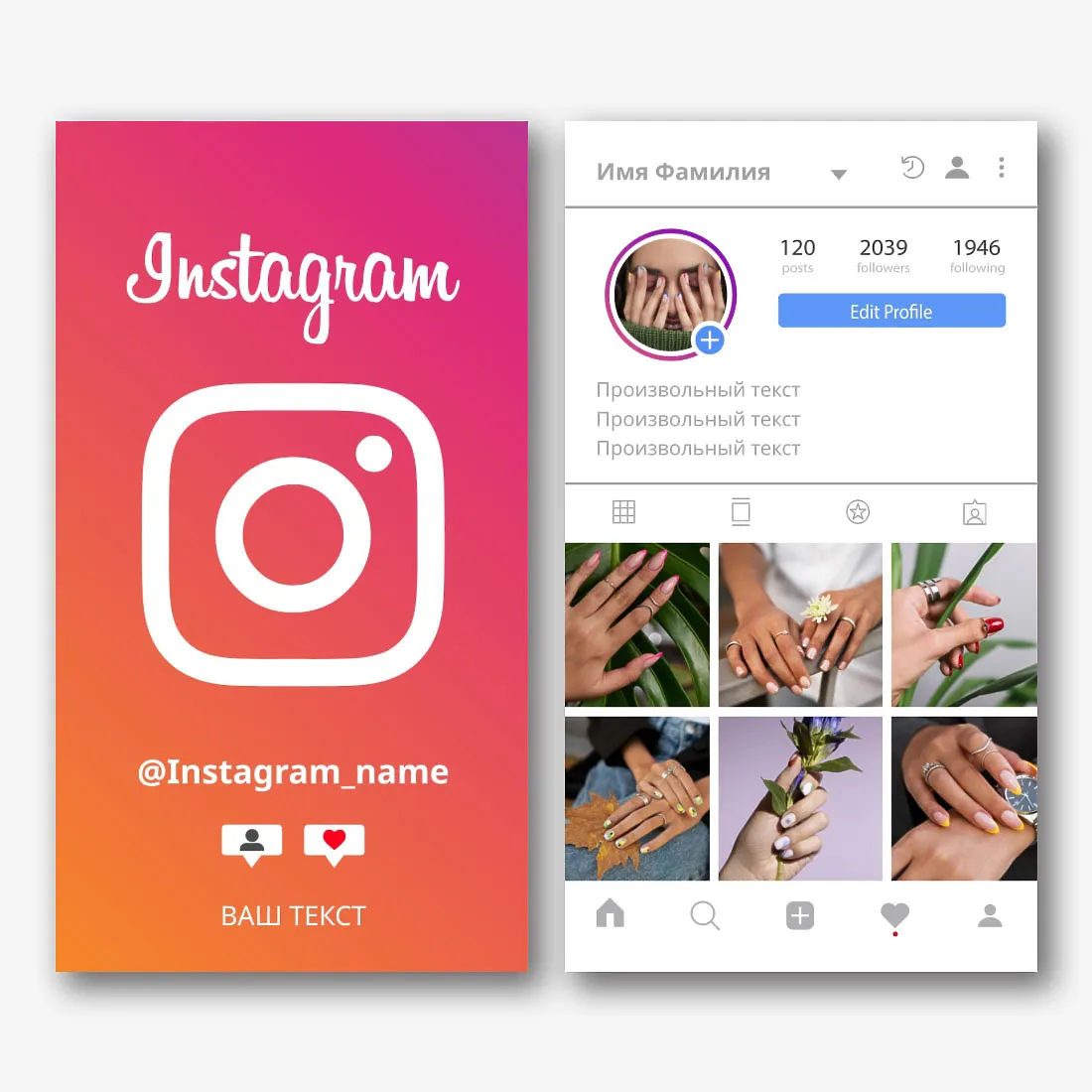 Шаблон вертикальной инстаграм визитки